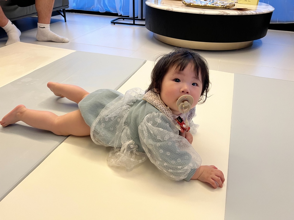 超級快速就可以自己翻過來翻過去,為了安全起見就要有個遊戲地墊