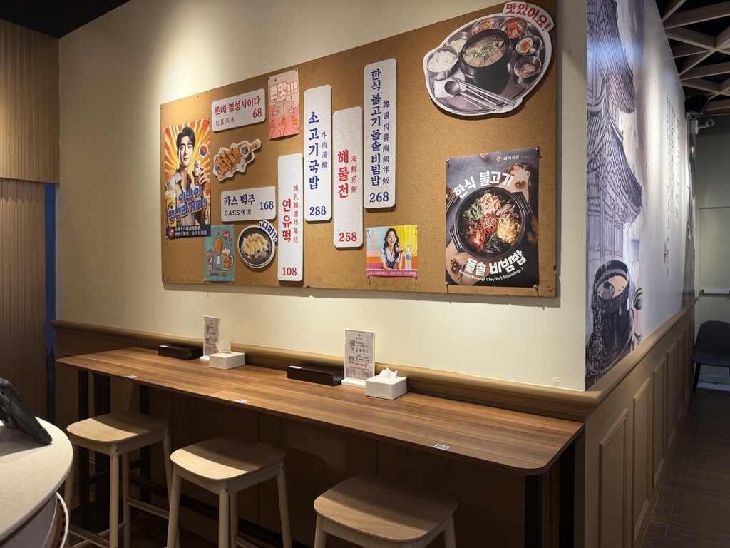 整間餐廳以木質調搭配柔和燈光,呈現溫暖又帶點韓式簡約風格